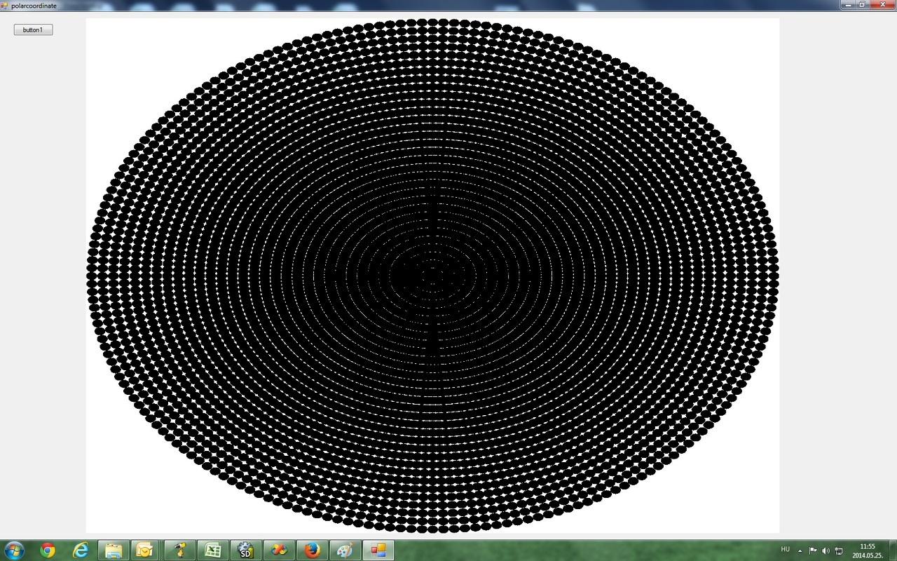 Kicsit több pöttyöt beállítottam, már sokkal szebb. Kiszámoltam kb mennyi képpont jön ki, ha egy 26"-os keréken 5mm-es led forog körbe, és az alapján csináltam meg. Elég sok képpont lett, bajban leszek a nagy adattal. Valami memóriát kell majd a PIC-en használnom, ezzel még bajban leszek.