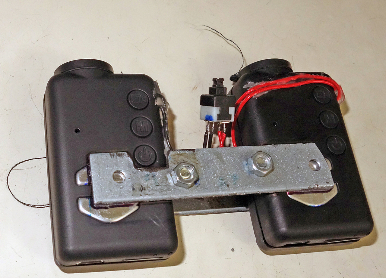 2db azonos kamerát használok stereo 3D videok felvételéhez. Eddig mindig két kézzel egyszerre lenyomva indítottam el és állítottam le a felvételt, és később mindig szinkronizáltam amikor a 2 videót egymás mellé muxolom a képkockák eltolásával. Most végre erőt vettem magamon és beforrasztottam 2-2 vezetéket a felvétel indító/leállító nyomógomb lábaihoz és kivezettem majd ráforrasztottam egy 2körös nyomógombra. A felvételeket (elvileg) így egy nyomásra tudom indítani és leállítani, viszont most amikor megnéztem munkám gyümölcsét nem voltak a képkockák szinkronban. A legelső felvételen már 8 képkockát kellett igazítani. (30fps módban rögzítettem, 8képkocka az már 8/30 másodperc azaz 266millisec csúszás.) Még amikor kézzel indítottam el akkor is jobban tudtam szinkronizálni, ha épp szerencsém volt, nem értem mi lehet a baj a kapcsolós megoldással. A kapcsolóban rugó van és van pár mm útja, de igen gyorsan nyomtam be indításnál, hogy ne legyen pár millisec eltérés se. (2 külön kört kapcsol/old.) Nem tudom miért lett még pontatlanabb az indítása a 2 azonos kamerának azonos beállításokkal. Igazából nem a képkockák csúsztatása a fő gond, az csak plusz munka, de azzal még tudnék élni, hanem, hogy nem csúsztathatok 2 képkocka közötti értéket azaz 1/30-ad sec közötti diffit nem hozhatok helyre (33millisec csúszással pedig látható különbségek vannak gyors mozgásoknál) és ezért is akartam közös kapcsolóval indítani. Rosz fajta kapcsolót választottam? Hely sajnos nincs bonyolultab optocsatolós megoldáshoz. A hozzászólás módosítva: Feb 9, 2015