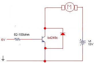 A motor csak a BD 249 kollektorában van és egy diódát köss vele párhuzamosan ( katód a tápon...).