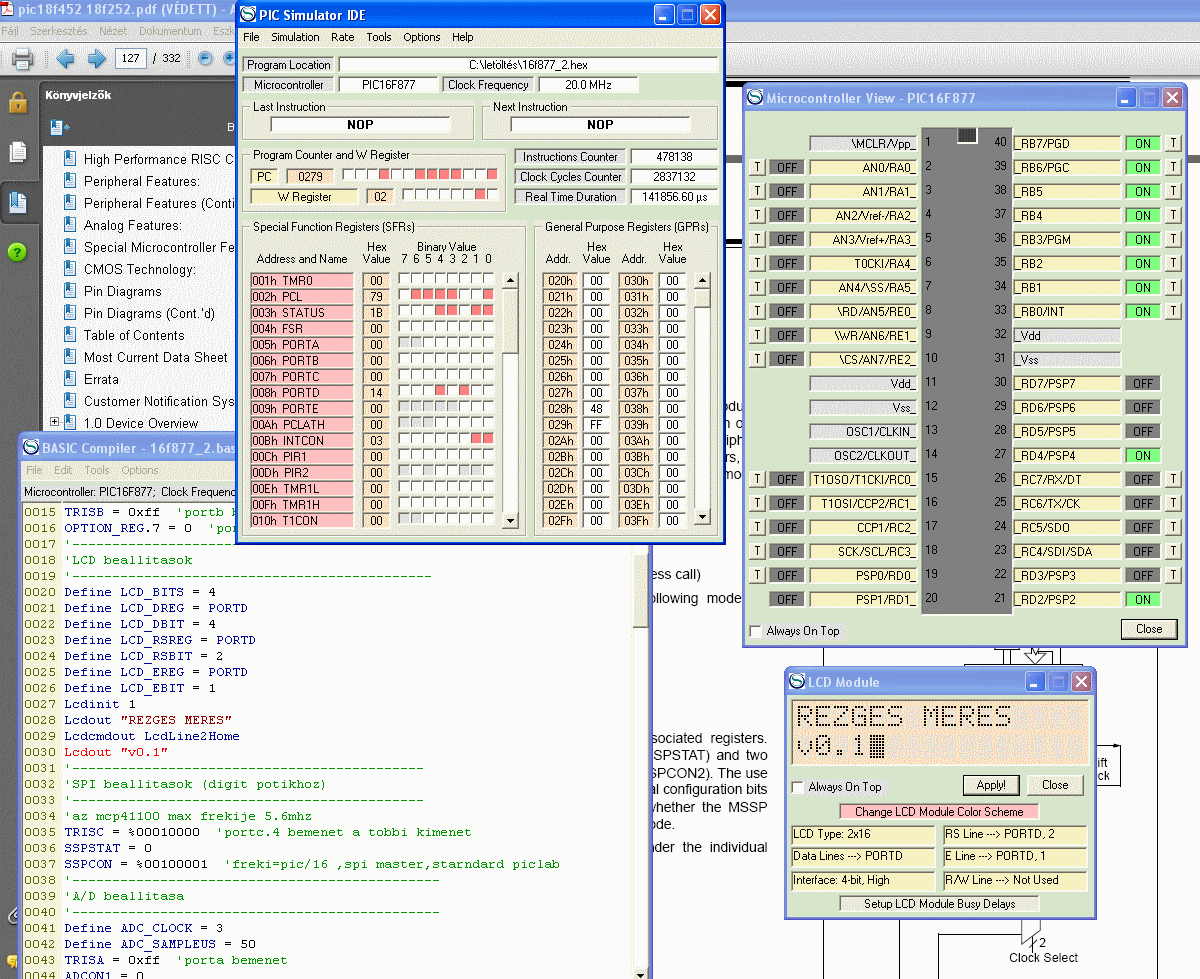Át kell rajzolni a PIC-et is a blokkvázlatban, mert ugye már LCD-vel van megoldva! Elkezdtem lefutatni az itthoni gépemen a programot, de nagyon lassú, átírtam bbatka javaslata szerint a programot! Csak leszimulálni nem tudtam!