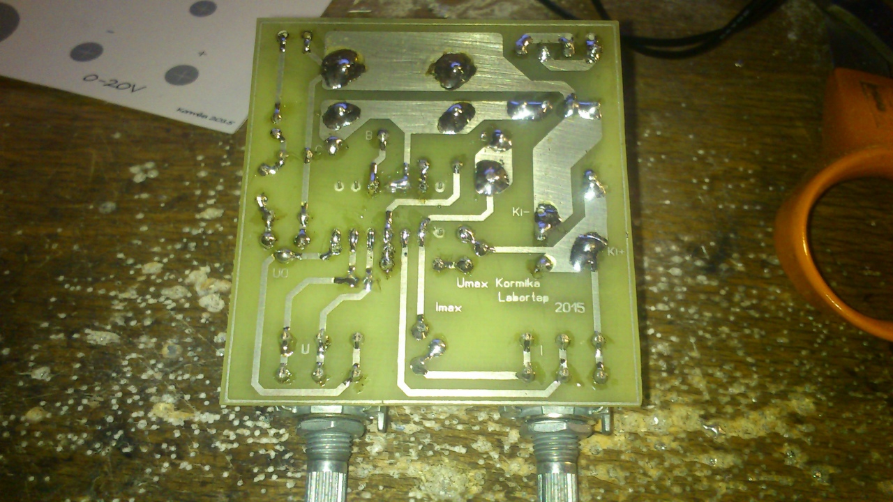 Épülőben van a labortápom, a doboz még nincsen kész, lézerrel vágatom 0,8-as lemezből, a belvilág viszont már elkészült és fel is éledt. Ha elkészül, akkor 0-20V-ig 250mA-1,5A-ig tud majd feszt szolgáltatni, nem egy nagyágyú, de mivel az utóbbi időben inkább mikrokontrollerekkel foglalkozom, bőven elég lessz. Az alap a régi ua723-as IC és a szintén nem mai csirke 2N3055. A kapcsolást neten találtam, és kicsit alakítottam rajta, mert eredetileg 2-20A volt az áramkorlát és 3-35V a feszültséghatár. Teszek fel pár képet, a már átrajzolt kapcsolási rajzot, és a paneltervet Sprint Layoutban.