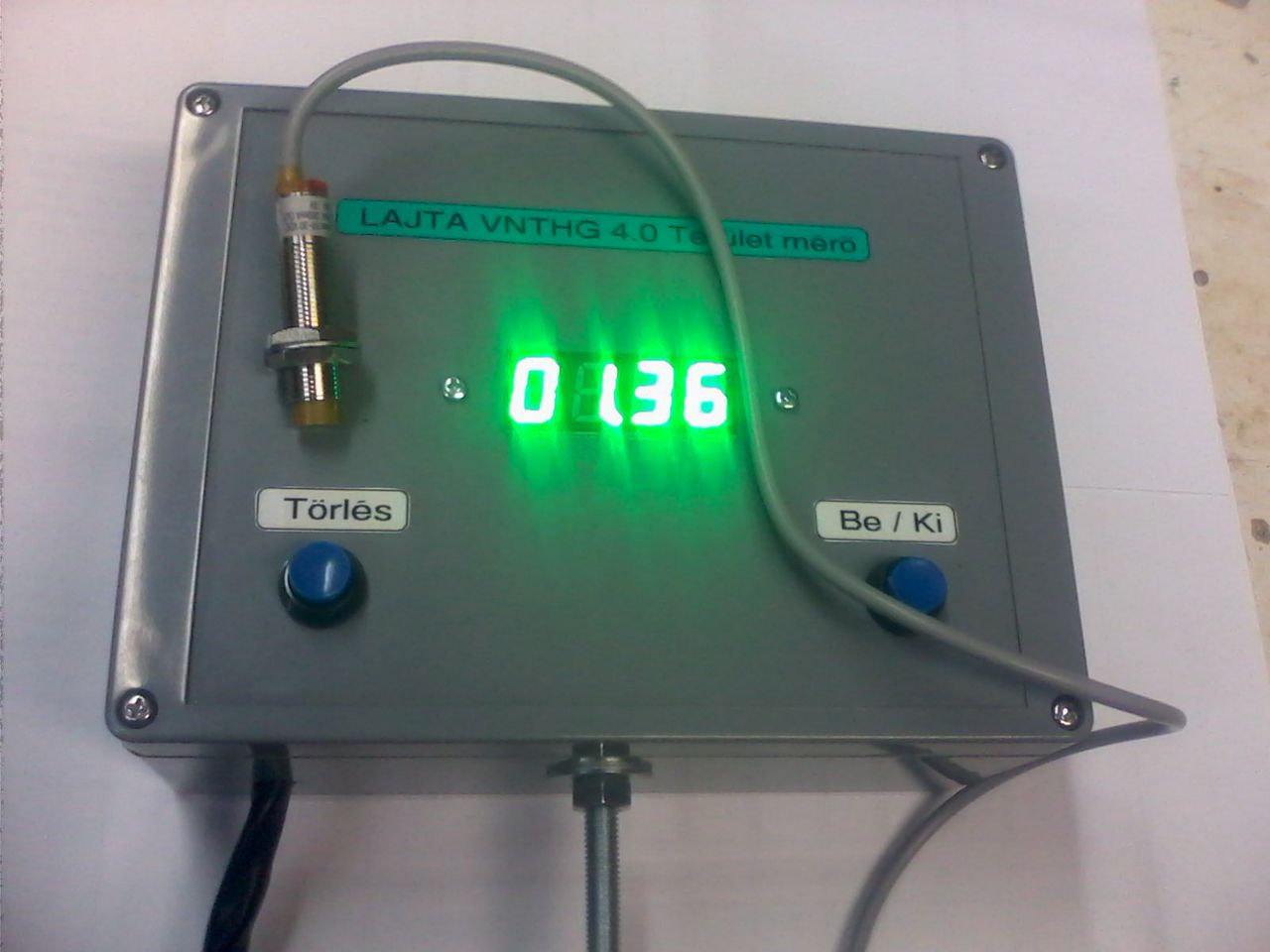 Nem azt tudja. Először meg kell számláltani vele, egy hektár alatt hány jel érkezik, mondjuk 4000, ezt századra leosztva az 40, tehát 40 jel lesz egy század hektár, negyven jelenként számol egyet. És ezt a 40 jelből, egy 4040-es osztó és egy 4081-es 4xkétbemenetes and kapu ami "programozhatóan" leosztja. Állítható a tápfesz, így a fényerő is, de ha szükség lesz rá (bár elég böhöm nagy a doboz is, jó ötlet az árnyékoló)
