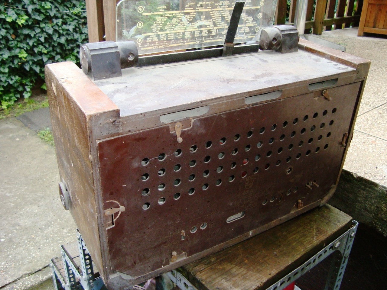Üdv mindenkinek. Nagy itt a csend. Ime egy újabb szerzemény: Philips 67A. A készülék ismét egy padlásról került elő, nagyjából meg van mindene, csak rozsdás, meg koszos. Viszont jó az üvegje, ami ebben a kategóriában ritkaság! A káva sajnos oda van, lejött a furnír több helyen, az ismerős asztalos meg jelenleg nem vállalja, magamnak kell majd csinálni vele valamit. Érdekes lesz. Láthatóan sportoltak már rajta, ahogy annak a nagy elkónak a beépítését elnézem. A következő napokban ezzel foglalkozom, majd írok róla.