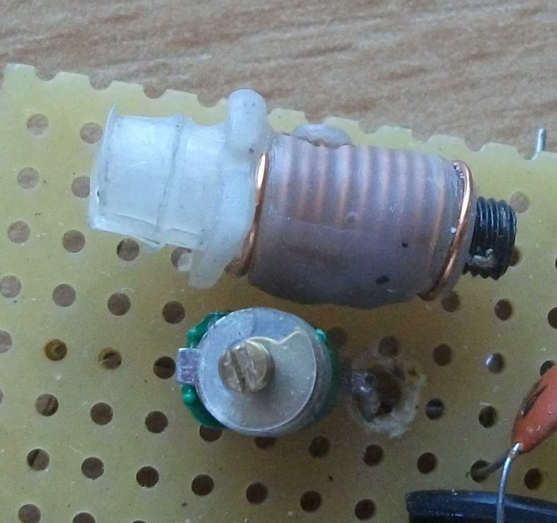 A rezgőkör tekercsét valami kábeltévés erősítőből szedtem ki szerintem zománcozott rézdrótból van. Induktivitás kalkulátorral megnéztem a paramétereit kiegészítettem egy ilyen alkatrésszel és megalkottam belőlük a rezgőkört.
