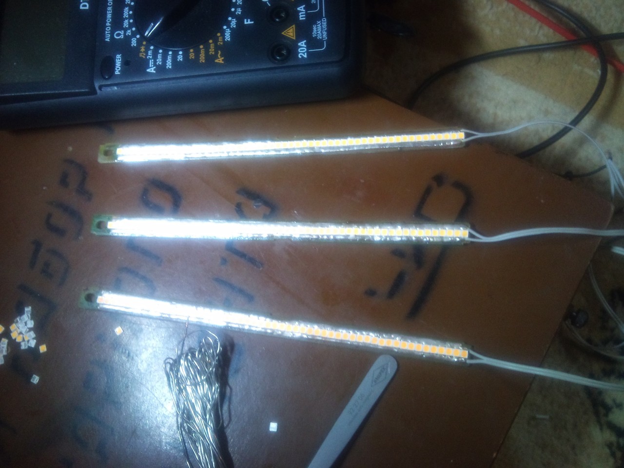 Építettem pár LED sort SMD LED- ből, párhuzamos bekötéssel ami DC12 V - ról működik.Újra a sógor Audijára lesz helyzetjelzőként. Egy soron 53 db LED van felforrasztva.