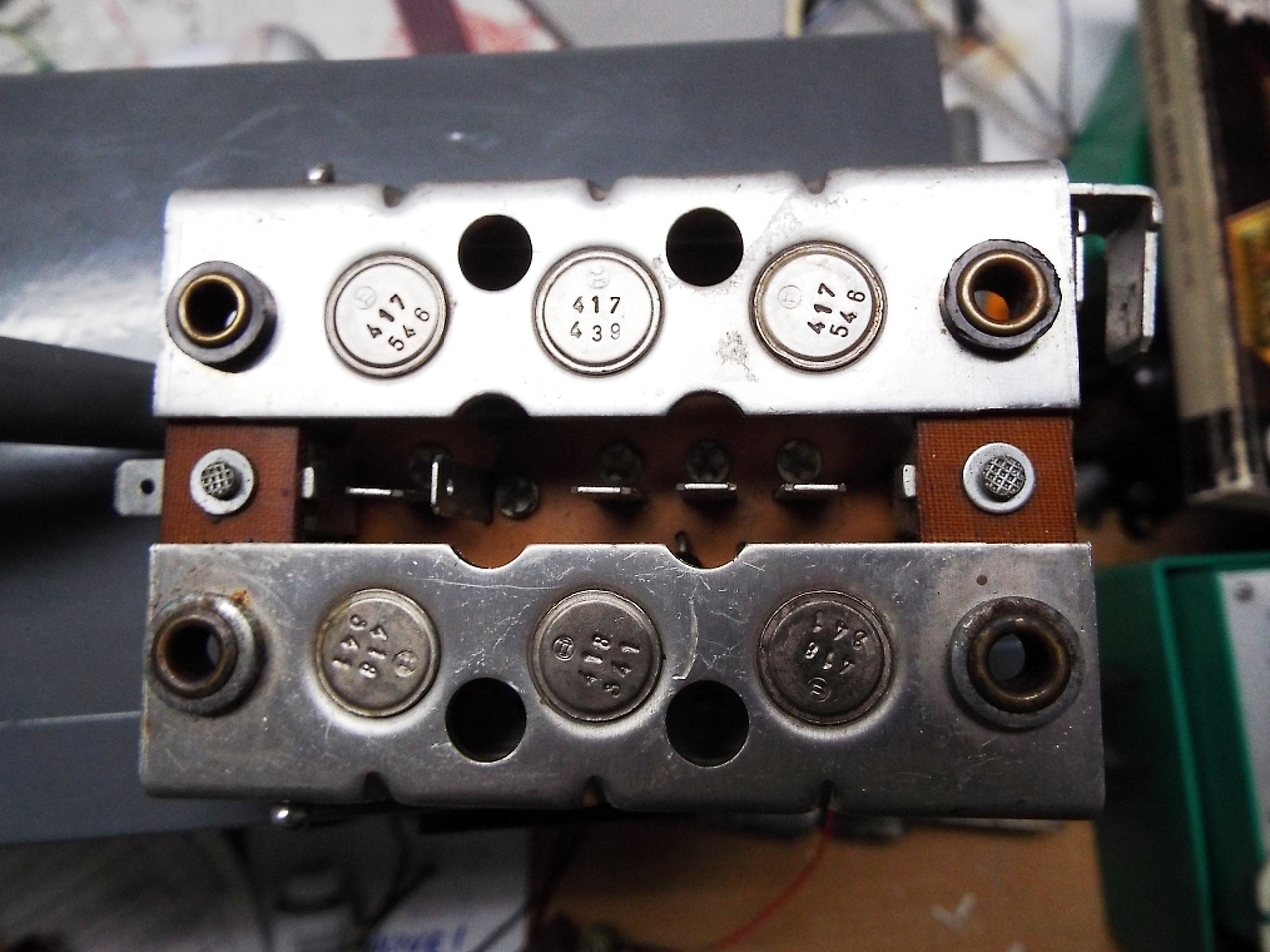 Találtam egy a képen látható dolgot. Első ránézésre 3 fázisú graetz-nek tűnik. Elég nagyok a diódák, de alattuk van egy-egy kis dióda is. Azok esetleg védelmi okokból vannak? 380-400V egyenirányítására alkalmas, vagy kisebb feszültségre való? Biztosan graetz?