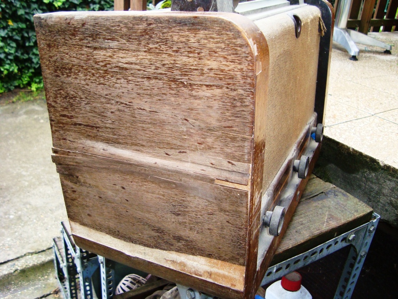 Üdv mindenkinek. Nagy itt a csend. Ime egy újabb szerzemény: Philips 67A. A készülék ismét egy padlásról került elő, nagyjából meg van mindene, csak rozsdás, meg koszos. Viszont jó az üvegje, ami ebben a kategóriában ritkaság! A káva sajnos oda van, lejött a furnír több helyen, az ismerős asztalos meg jelenleg nem vállalja, magamnak kell majd csinálni vele valamit. Érdekes lesz. Láthatóan sportoltak már rajta, ahogy annak a nagy elkónak a beépítését elnézem. A következő napokban ezzel foglalkozom, majd írok róla.