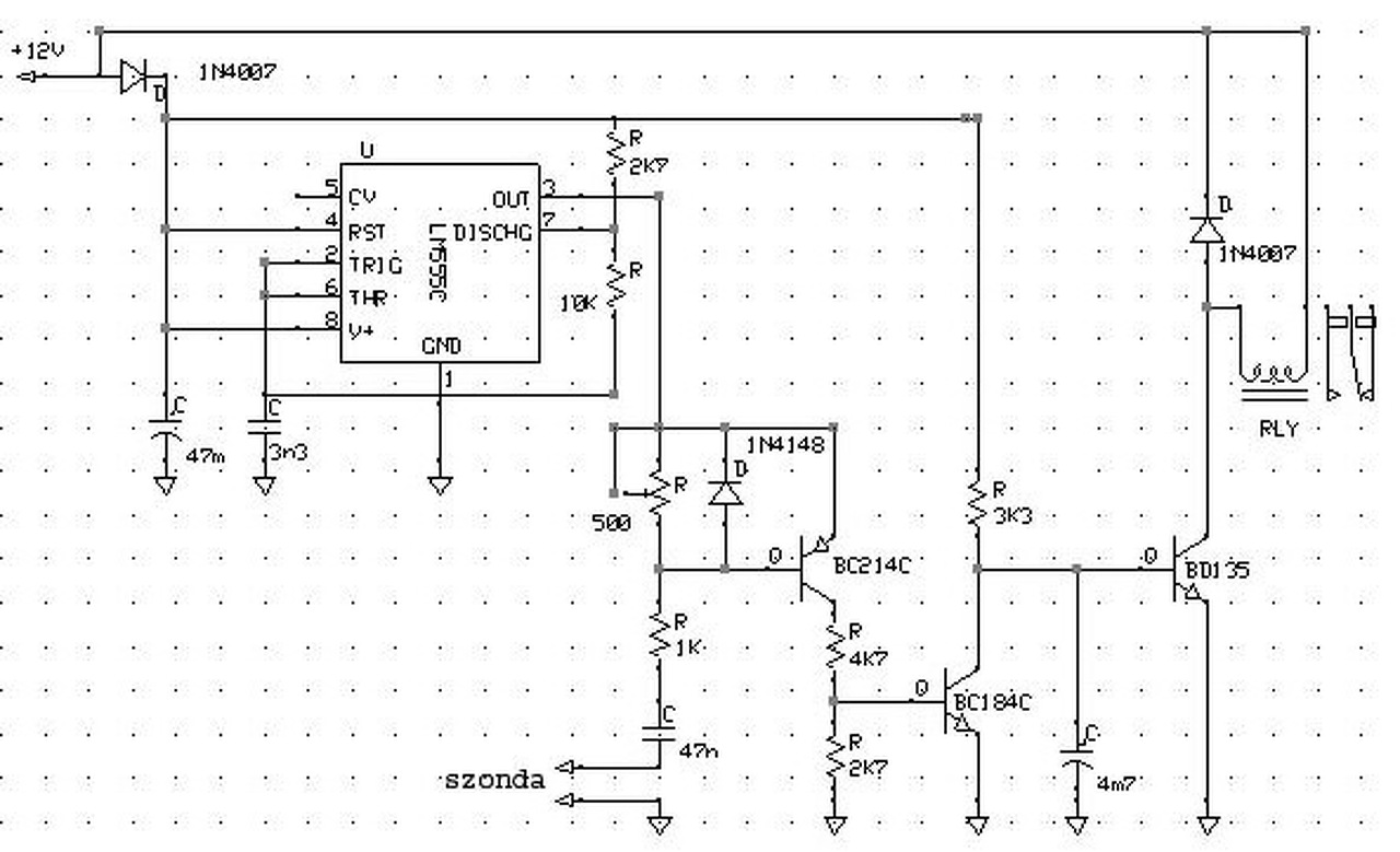Ha ez így működik, akkor közel vagy a jó megoldáshoz. Víz nélkül tekerd a potit oda, ahol épp meghúz a relé. Majd tedd a szondát a vízbe, és ekkor el kell engednie.