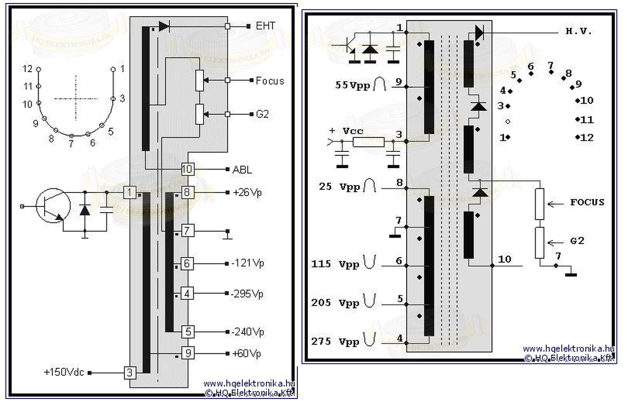 Azért nem minden trafó jó minden tévéhez.Ha kivetted akkor a rajzon , illetve csak külön van sortrafókról rajz , hogy melyik láb melyikkel kell , hogy köntaktban legyen .Amelyik lábhoz nem tudsz majd mérni , és a rajzon kellene tudni , akkor az az jelenti , hogy az a lába szakadt a trafón belül. Én a 7 es lábra tippelek.A 7 es láb elvileg majdnem mindegyikkel a primer oldalon kell , hogy mutasson , Tehát a 7 es az 1,3,4,5,6,9 lábbakkal működik.Tehát olyan mint egy közös pont.Ha valamelyikhez nem fogsz tudni mérni , akkor az a trafó kuka.Illetve számítana az is , hogy mennyit mérsz , mert lehet , hogy csak már gyenge a trafó , de első körben ezek lennének a fontosak , hogy nincs e szakadás.