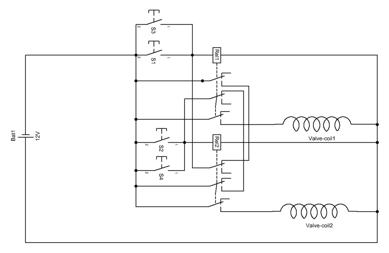 Lehetne egygombosra is, de ahhoz kisebb elektronika kell, vagy akár PIC-es is lehetne. (kérdésedid alapján ezt nem feltétlenül szeretnéd..) 12V-ra csináltam, ami fakultatív, lehet más feszültségszintre is, bár ez talán kevésbé veszélyes. mondjuk ilyen relével. Sebinek igaza van én 2db 3/2-es alaphelyzetben nyitott szelepet használnék, a leszellőzésnél fojtóval... S1-nyit S2-zár S3 és S4 a másik pontról. De ez csak egymegoldás, többféle is célravezető lehet... A hozzászólás módosítva: Júl 10, 2014