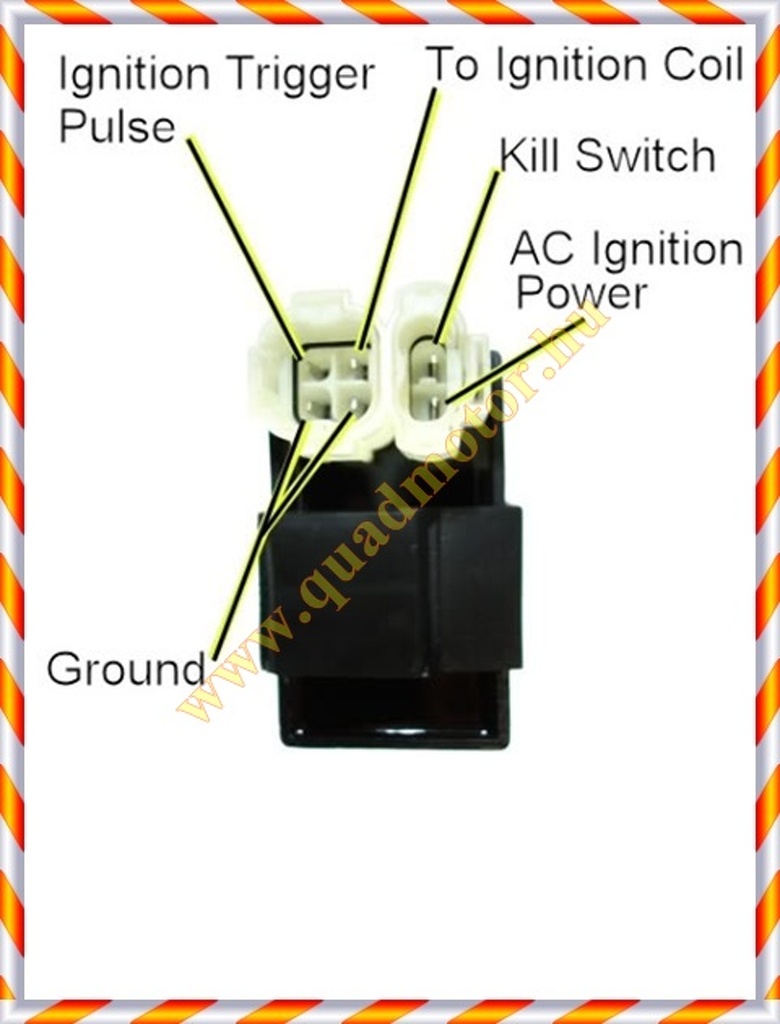 Van egy képem a robogó gyújtásvezérlőjéről. Mellékelem a képet. Kérésem az lenne, hogy valaki fordítsa le nekem magyarra a kifejezéseket. Próbáltam a Webfordítóval, de olyan nevetséges kifejezések jöttek ki, hogy nem merném aszerint bekötni. A lefordítandó kifejezések: 1. Ignition Trigger Pulse; 2. To Ignition Coil; 3. Kill Switch; 4. Ac Ignition Power.
