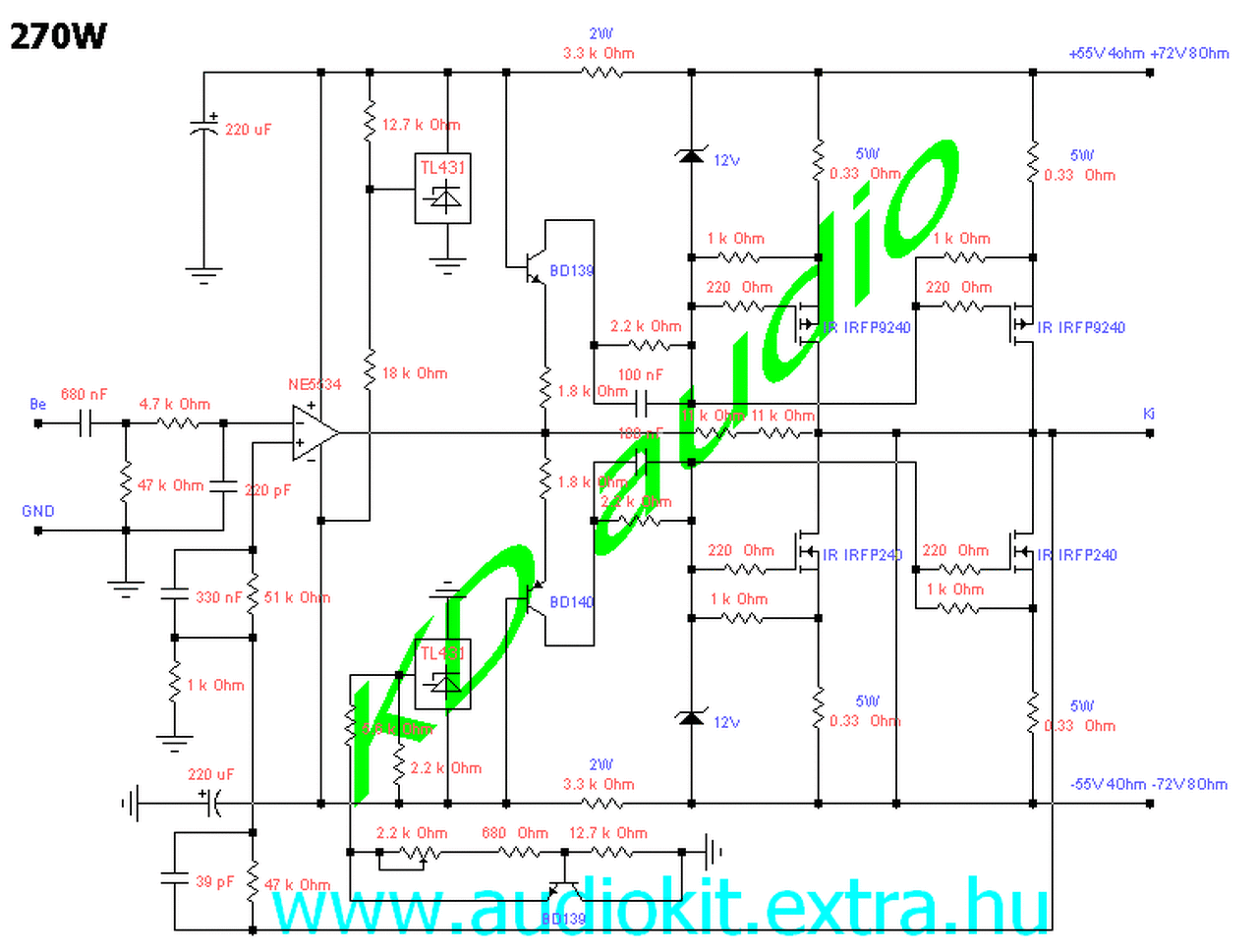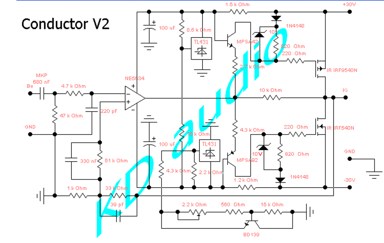 Ami 30 V tápfeszre készült, annak a munkapont-beállító áramkörét -BD139 körül- kellene használni? Ezt próbálnám ki.