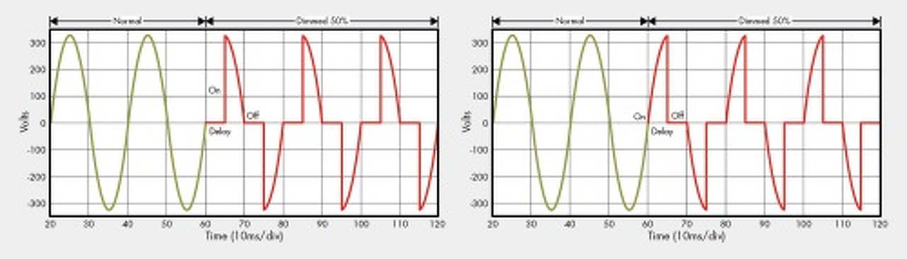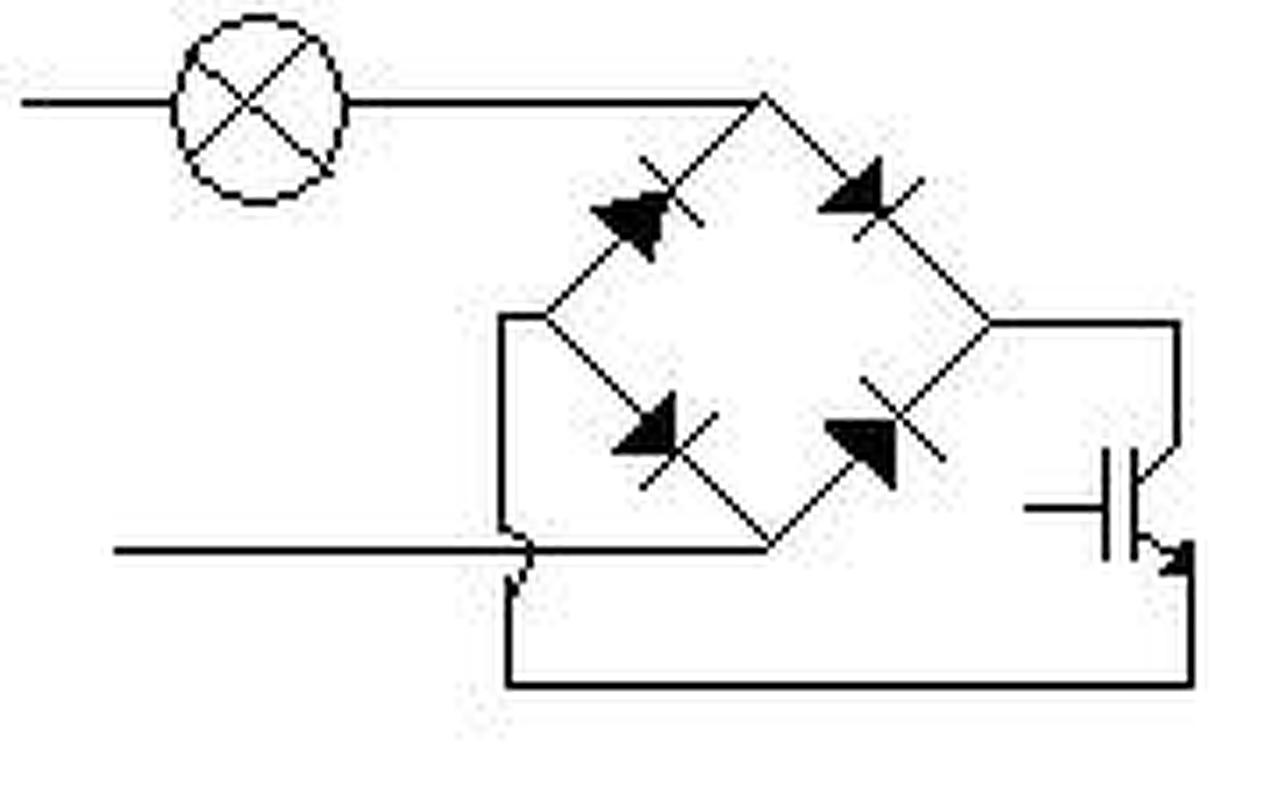 A jobb oldali verzió-hoz IGBT-t (vagy MOSFET-et) használnak. A váltókörben sorban bent fogyasztó, aztán át a graetz-en, így az IGBT mindig egyent kap. Szóval egyenáramú szaggatóval is lehet váltót dimmelni. Sőt, így még szinusz burkolt PWM-et is lehet készíteni (azt nem tudom, hogy ehhez mit szól(na) a motor).