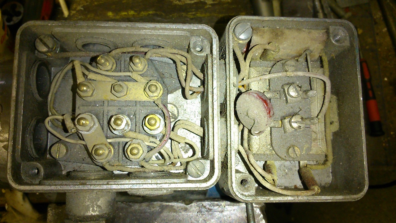 Kaptam egy régi orosz asztali köszörűt aminek a az egész elektromos csatlakozása szét lett szedve, és nincs is meg. A motorja 1 fázisú 500W-os, kettő pár vezeték jön ki a motorból az egyik érpáron 9Ω-ot a másikon 32Ω-ot mérek. Mellékelek egy fotót, nem az enyém de így néz ki.
