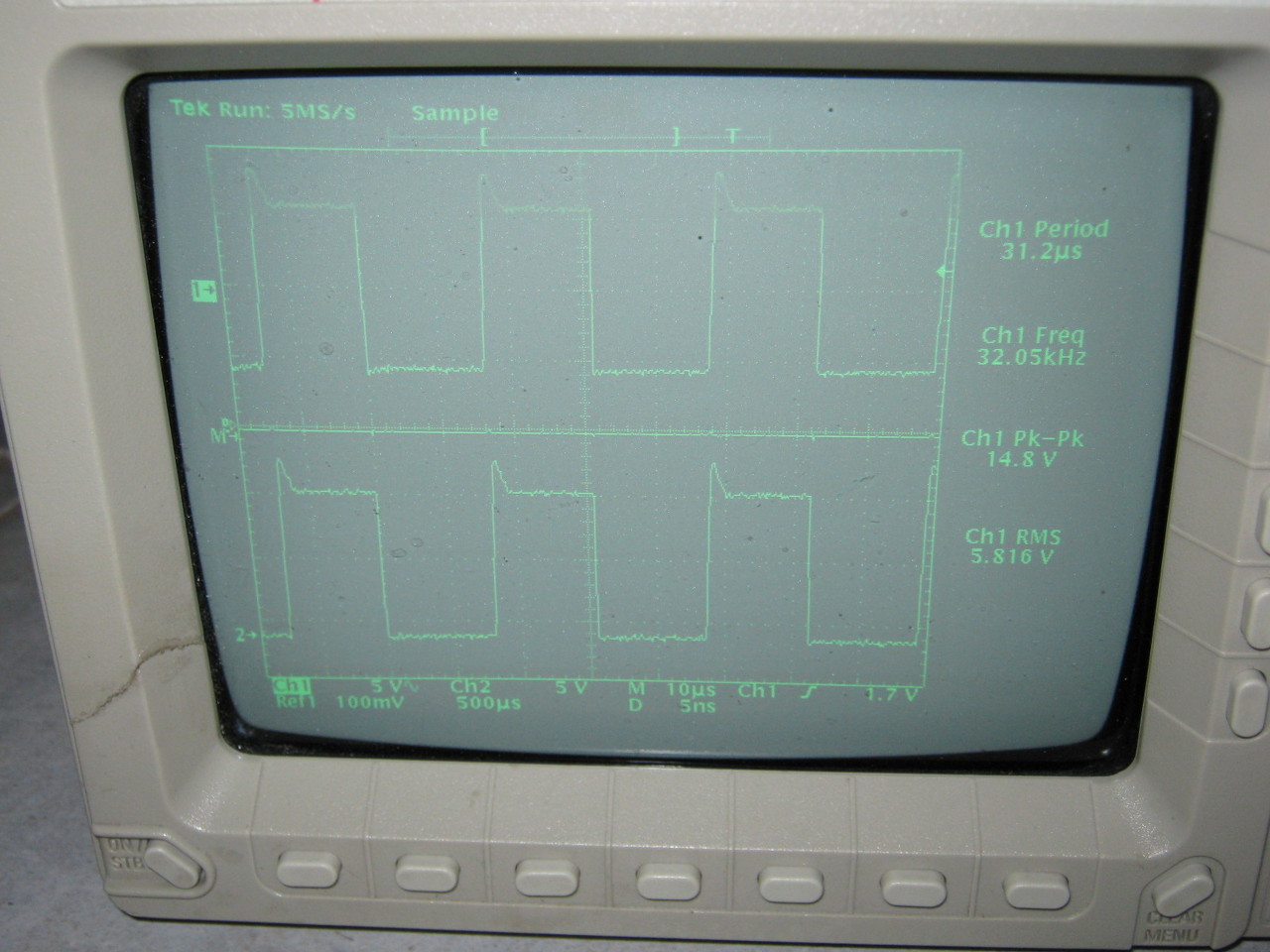 Ilyen lett, a felfutó élen van túllövés. Talán Tőled olvastam régebben, hogy a tápfeszültség megemelésével eltüntethető. Érdemes foglalkozni vele vagy maradhat így is?