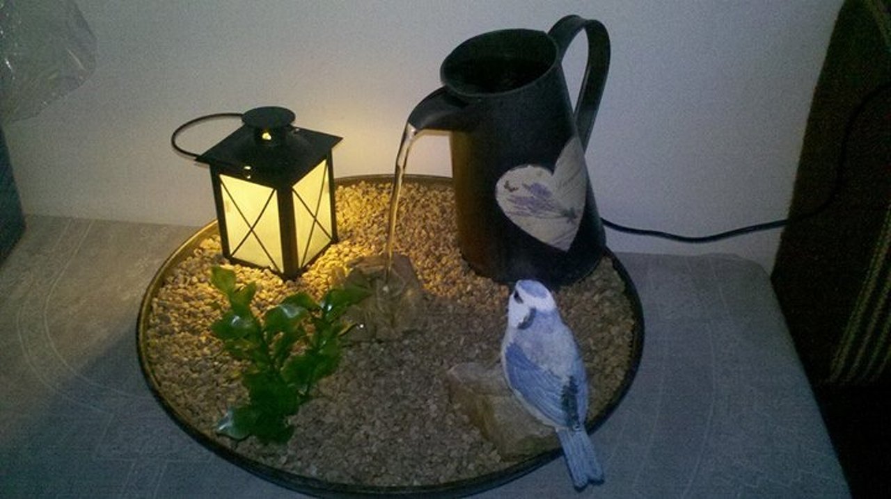 Sajnos nem készültek "hogyankészült-fotók", de megígértem, hogy ha elkészülök vele, felteszem ide, hogy ne csak én gyönyörködhessek benne. ![]() Annyiban kapcsolódik az elektronikához, hogy a tápegység AC/AC és a vezeték ketté ágazik: az egyik a kis 2W-os szivattyút hajtja, a másik pedig egy szabad szál 12V-al. Sajnos a váltóáram miatt a kis lámpásban elhelyezett ledek bántóan vibráltak, tehát a Kezdő Kérdésekben kapott támogatással, egyenirányítani is megtanultam. ![]() Kezdő vagyok ezért nagy sikerélményt jelent egy ilyen -számotokra egyszerű- művelet is! ![]() Amúgy az egészet én építettem, itthon fellelt dolgokból (mint a kis díszlámpás, a lemezkanna, a cinege, ami letört egy dísztárgyról, és akváriumi dísznövény, na meg az apró szemű kavics, és a Wok teteje, amiben van) ![]() Köszönöm mindenkinek a segítséget!!! ![]() Szép napot mindenkinek!