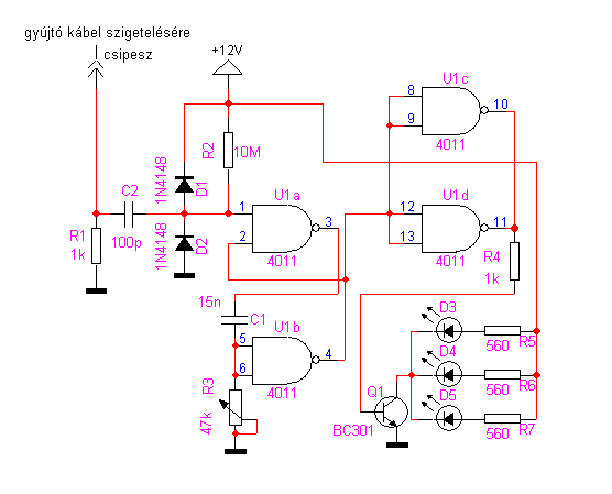 Sziasztok! Segítségre lenne szükségem. Megépítettem a LED-es változatot, de amint rákötöm a tápot, folyamatosan világít. A kapcsolásban a magas jelszintnek mekkorának kellene lenni? mert én 8V körüli fesz.-eket mérek.