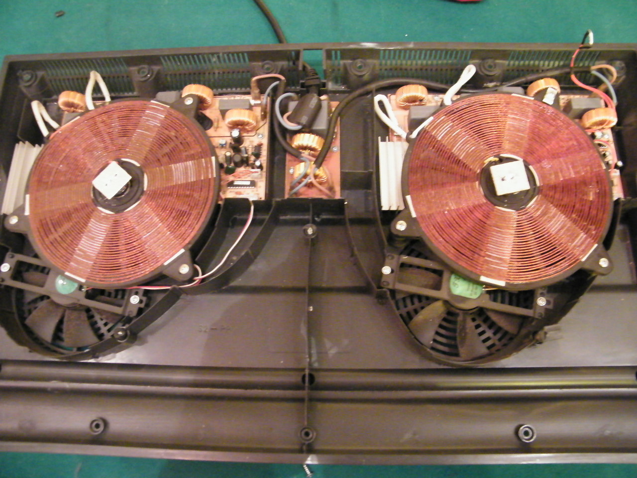 Kedves Fórumtársak! Egy ismerős hozott javításra hozzám egy dupla indukciós rezsót, hogy a jobb oldala "halott" volt. Egy kis méricskélés után meglett a hiba, egy , a tekercs műanyagtartóját is leszorító csavar-lemez alatt egy 125 C értékű hőbiztosíték "elműködött". Mivel ilyen nekem nincs, (és ahogy mértem, ilyen vékony átmérőjű nem is beszerezhető), rövidre zártam, és rögtön jó is lett a jobb oldal. A hőbiztosíték tulajdonképpen a vezérlés tápellátását szakítja meg. Csak az az érdekes , hogy a baloldali részen ilyen hőbiztosíték nincs is! (Középen természetesen mindkét oldalon ott figyelnek a termisztorok.) A nyáklemezek nagyon hasonlítanak egymáshoz, de nem teljesen egyformák.