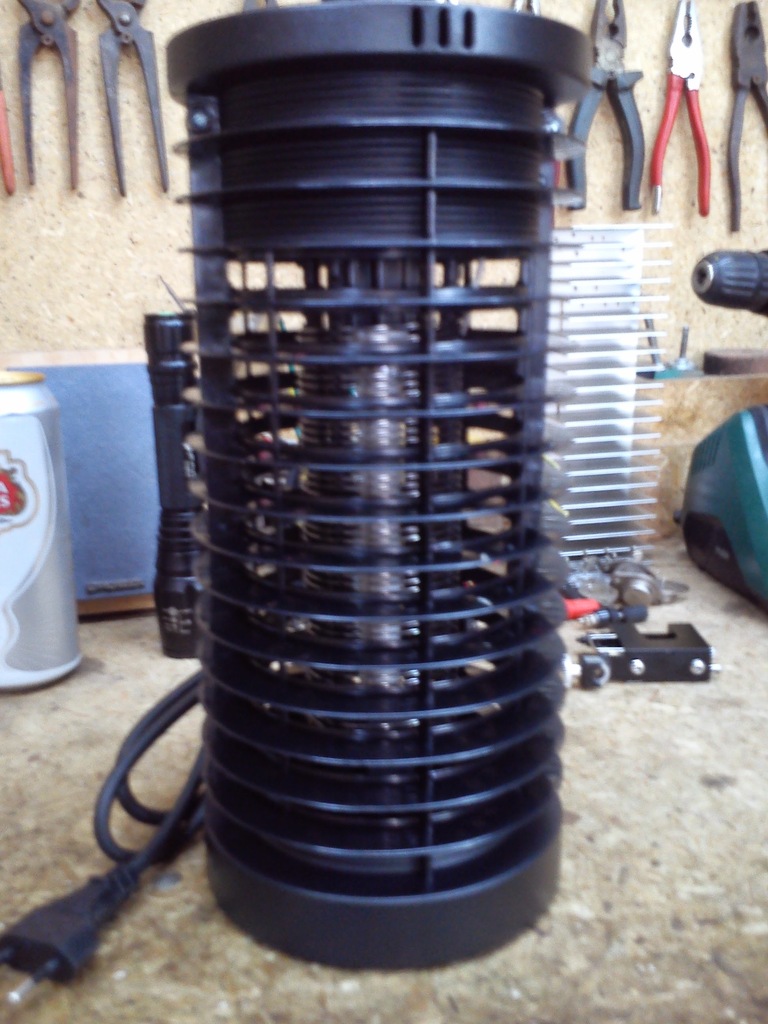 2 éve vettem egy elektromos rovarölőt a T****-ban. 5 óra múlva kiégett a T30-as izzó. Most elővettem, ledesítettem, ám nem akarta a 800V-ot produkálni. Nem elég, hogy alumíniumból van tekerve a rács, de a 4 kondenzátor és a hozzá tartozó diódákon kívül volt még egy huzalellenállás, ami természetesen szakadt volt. Ipari hulladék, de már megy. Ne vegyetek hasonló csodát.