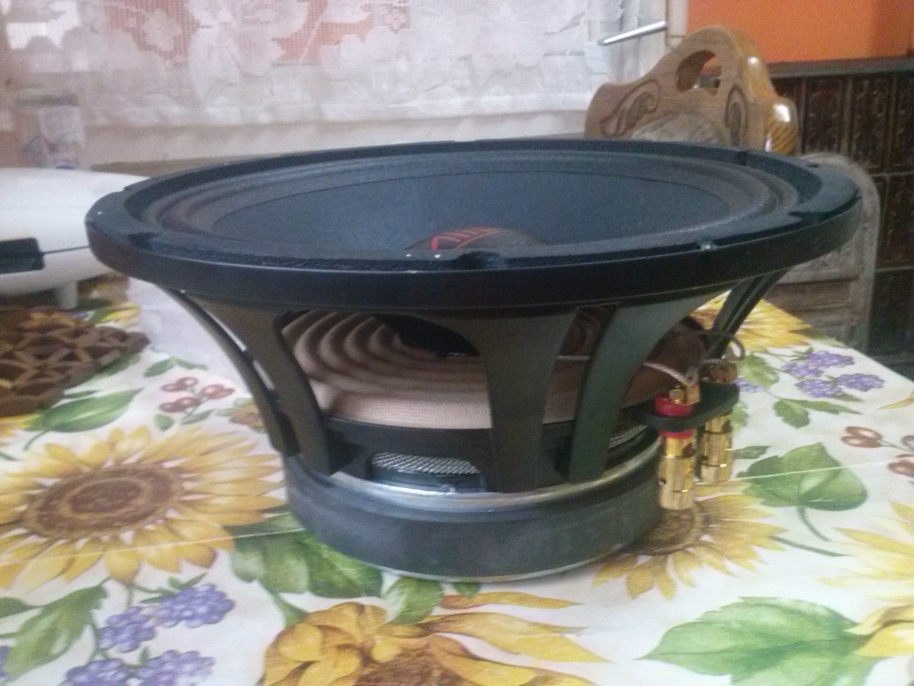 Sziasztok! Nem tudom hogy emlékeztek-e hogy kérdeztem hogy milyen hangszórót vegyek a kis aktiv kontrollomba. Mondtátok hogy vegyem meg a drágábbikat, nagyobb az érzékenysége. Na megjött a kis hangszóró, mikor kibontottam ledöbbentem. Normális sziptetős csatlagkozó van rajta. Az az 50 oZ mágnes jól meglátszik a kis 25 cmn. Nagyon jól ki van alakítva a hűtése.(sárga pille alatt van egy vasszita ahol tud levegőt szívni.) Az érzékenysége az meg feltünően jobb a másikhoz képest. Annál a hangszórónál muszály volt leengedni a magasat, hogy legyen benne közép is. Na ennél nem, szinte ordít belőle a közép és nem utolsó sorban nagyon jól puffog. Annyi hogy átkell alakítsam kicsit a ládát, nagyobb lyuk kell neki. Ennek indoka hogy ez öntvénykosaras. Kicsit nagyobb a befogatási lyuka, első ránézésre elég massziv kis hangszórónak tünik. Beszéljenek a képek.