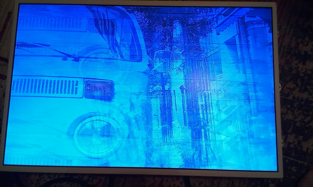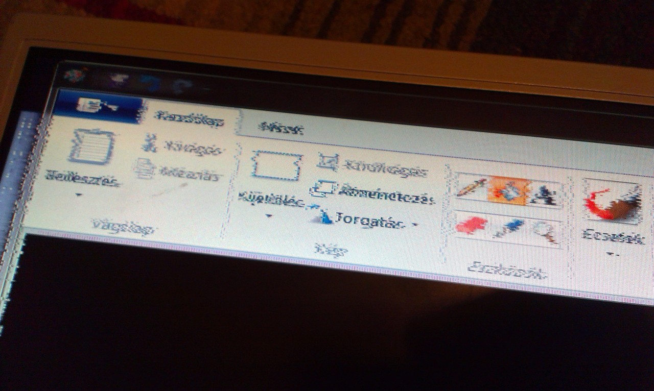 Csatoltam képet a hibajelenségről. Az középső képen paint-ben befeketítettem a kijelzőt, így valamennyit csökkent a zajosság. Így a menüben sikerült a színeket is beállítani.