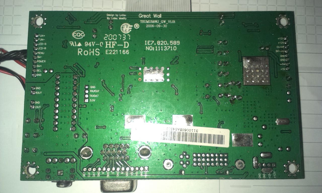 Ez egy olyan monitor volt, amit úgy vettem, hogy nem ad képet egyik napról a másikra. Aztán szétszedés után kiderült, hogy a szalagkábel hiányzik, valamint a szalagkábel csatlakozó a main-on el van törve. Ezért azt levettem róla, egy hibás mainról pedig átraktama helyére egy jót. Neten rákeresve a main-re, mindenhol sima 30pines szalagkábellel láttam, amiből van itthon, ezért azzal próbálkoztam. Valószínűleg nem véletlenül adta így el az előző tulaj...