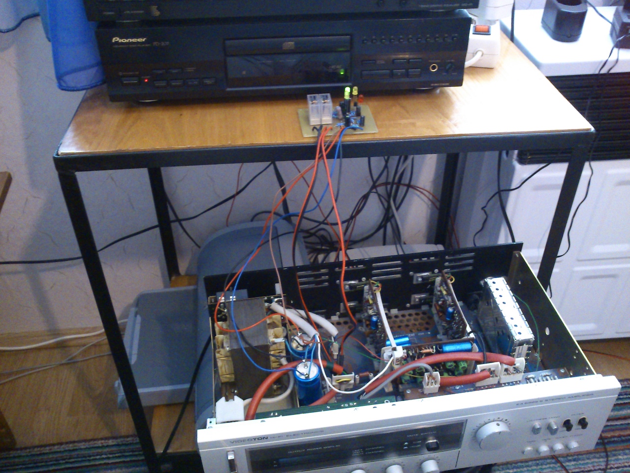 Nos, elkészültem vele, Tökéletesen működik, csak egy probléma van vele, mégpedig, hogy az erősítő kikapcsolásakor a relé oldhatna egy pár ms-al hamarabb.. Mert olykor behallatszik a kikapcsolási "pattogás". Megoldható ez valahogyan? A váltófesznél lévő 56k-ellenállást vegyem kisebbre, vagy esetleg a 2,2µF-os kondit cseréljem?