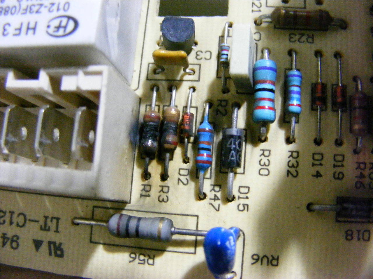 Adott az alábbi Indesit panel,a motor csatlakozó átéget a tahó és az állórész egyik szála között.Segitségeteket kérem az alábbi alkatrészek értékének azonositásában. R1,R3 ellenállás, D2 dióda és a hátoldalon látható smd. A fáradtságot előre is köszönöm. |