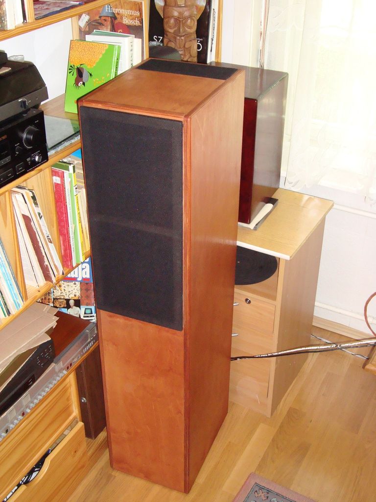 Aztán a végső szín nagyban függ attól is, hogy milyen fát használtál, mert nem tudni előre pontosan, hogy milyen lesz a színárnyalat a pácolás és a lakkozás után. Attól is függ, hogy hányszor pácolod be. Több pácolás, sötétebb szín. Aztán ha lelakkozod, az un. "tüzesíti" a színt, tehát élénkebb lesz. Ha van még ebből a faanyagból, amiből építetted a dobozt, azt javaslom, hogy vegyél többféle pácot amelyik tetszik, és kísérletezd ki, hogy hogy fogja be a fát, és milyen lesz a színe. Tehát ne egyből a dobozra kend rá, mert ha nem tetszik, akkor építheted meg még egyszer. Ha elfogadsz egy javaslatot, bár ez inkább az én ízlésem, én a fa természetes színét szeretem, ha esetleg be is pácolom, akkor próbálok olyan színt kikeverni, ami hasonlít valamelyik fa színére. Például az egyik hangdobozom vöröses színű lett, és hasonlított valamelyik afrikai fafaj színére. Lelakkozva gyönyörű lett. Kicsit hasonlított a cseresznyefa színére, de annál sötétebb volt, a bubinga-nál viszont világosabb. Aztán az egyik erősítő dobozom előlapja valódi mahagóni. Az sem piros, inkább sötétbarnás árnyalat. Hát nem lesz egyszerű eltalálni a színt amelyik tetszeni fog neked. Mindenképp kísérletezd ki, hogy mi fog neked tetszeni. Ok?