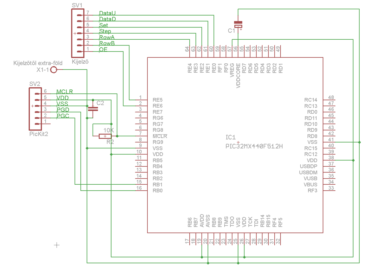 Egy aprócska gondom van, mégpedig hogy sehogy sem bírom működésre bírni a pic32-met, pedig mindent a dokumentáció alapján csináltam, Idézet: „The following is a list of pin names, which must always be connected: • All VDD and VSS pins (see Section 2.2 “Decoupling Capacitors”) • All AVDD and AVSS pins (regardless if ADC module is not used) (see Section 2.2 “Decoupling Capacitors”) • VCAP/VCORE (see Section 2.3 “Capacitor on Internal Voltage Regulator (VCAP/VCORE)”) • MCLR pin (see Section 2.4 “Master Clear (MCLR) Pin”) • PGECx/PGEDx pins used for In-Circuit Serial Programming™ (ICSP™) and debugging purposes (see Section 2.5 “ICSP Pins”) • OSC1 and OSC2 pins when external oscillator source is used (see Section 2.8 “External Oscillator Pins”)” Mellékleben lévő két kép tanúskodik erről, egy a kapcs rajz, másik meg az összekötés. 28 milliószor leellenőriztem a bekötést, a felprogramozás megy, kiolvasás megy, de mikor ráadom pickit2-ről a tápfeszt, semmi nem történik. Elvileg az RE6-os lábat kellene villogtatnia. Beírnám a kódrészletet is, ami ezért felelős tulajdonképpen más nincs is a programban...
