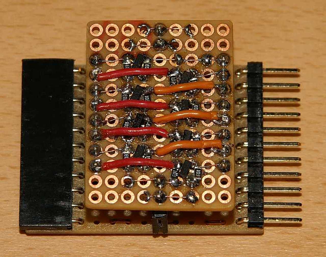 Szóval. Több csupalyuk panelre készített próbapanel után meguntam, hogy mindig ujat kell csinálnom, hát csináltam egy olyat, amibe 8-tól 40 lábúig minden DIP tokos mikrovezérlő betehető. Az adott típushoz (típus-családhoz) elég egy öcsi-panelt csinálni, ami az adott típushoz (családhoz) van igazítva. Ez az öcsi-panel a textool foglalat fölé dugható. A textool 40 lábán kívűl erre még csatlakozik a GND, a +5 és +3,3 V, és az USB jelvezetékei is. Az egyes "perifériák" tüskesoros csatlakozókkal csatlakoznak. Szintén tüskesoros csatlakozó "anya" feléből lényegében ki van alakítva egy dugdosós panel, így lehet összekötni a mikrovezérlő lábait a kiegyészítő megfelelő lábaival. A panel használható bootloaderes fejlesztéshez is, illetve az öcsi panelre csatlakoztatható programozó eszköz. (Én picKIT3-at használok.) Az első két képen egy DP32 klón összeállítás, illetve kiegészítő panelek vannak. A 3. 4. képen egy szintillesztő látható, aminek az érdekessége, hogy az öcsi-panelen egy kisöcsi-panel van, hogy az illesztési iránynak megfelelően lehessen forgatni. Kissé lökött ötlet csupalyuk panelen SMD-t használni, de csak így fért el.