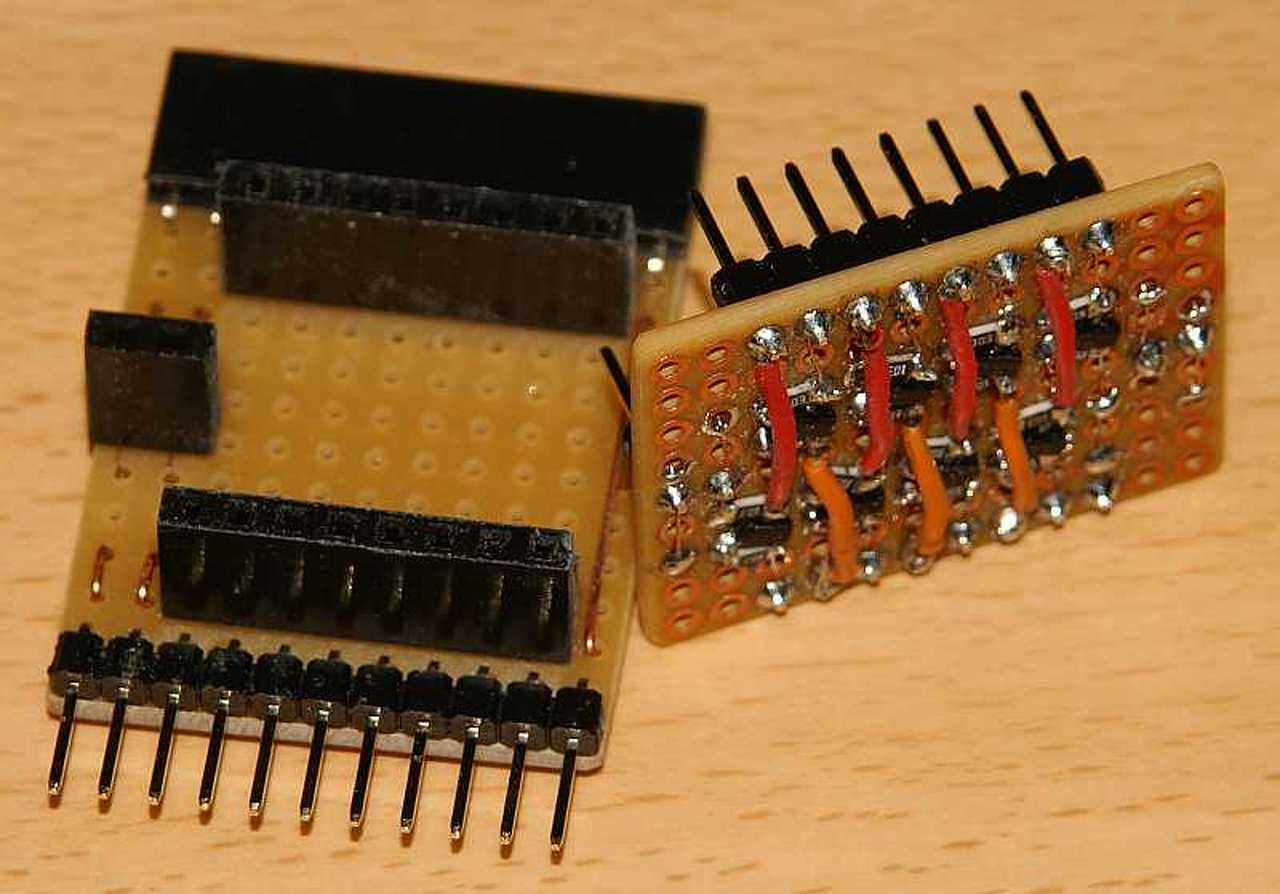 Szóval. Több csupalyuk panelre készített próbapanel után meguntam, hogy mindig ujat kell csinálnom, hát csináltam egy olyat, amibe 8-tól 40 lábúig minden DIP tokos mikrovezérlő betehető. Az adott típushoz (típus-családhoz) elég egy öcsi-panelt csinálni, ami az adott típushoz (családhoz) van igazítva. Ez az öcsi-panel a textool foglalat fölé dugható. A textool 40 lábán kívűl erre még csatlakozik a GND, a +5 és +3,3 V, és az USB jelvezetékei is. Az egyes "perifériák" tüskesoros csatlakozókkal csatlakoznak. Szintén tüskesoros csatlakozó "anya" feléből lényegében ki van alakítva egy dugdosós panel, így lehet összekötni a mikrovezérlő lábait a kiegyészítő megfelelő lábaival. A panel használható bootloaderes fejlesztéshez is, illetve az öcsi panelre csatlakoztatható programozó eszköz. (Én picKIT3-at használok.) Az első két képen egy DP32 klón összeállítás, illetve kiegészítő panelek vannak. A 3. 4. képen egy szintillesztő látható, aminek az érdekessége, hogy az öcsi-panelen egy kisöcsi-panel van, hogy az illesztési iránynak megfelelően lehessen forgatni. Kissé lökött ötlet csupalyuk panelen SMD-t használni, de csak így fért el.