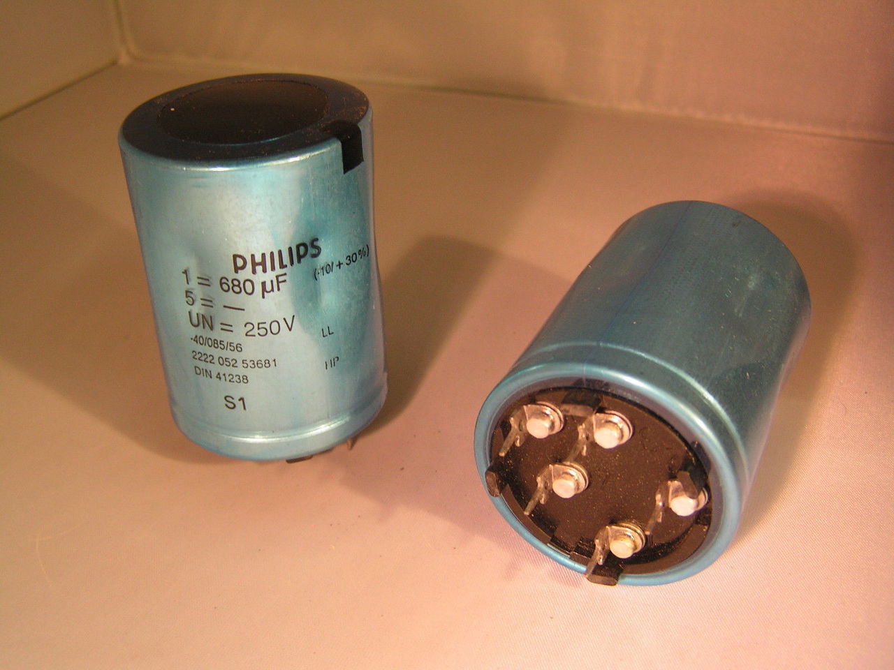 Épül a táp. Találtam itthon 2 db Elkót. Philips gyártású, legalább 6-8 éves kondik. A gyári érték 680mF/250V. A mért adatok 701-702µF Ezeket sorba kötöm a tápba a fojtó elé, kondinként 100K ballanszer/kisütő elllenállással. Ez esetben az eredő kapacitásom, 340-350MF lesz.