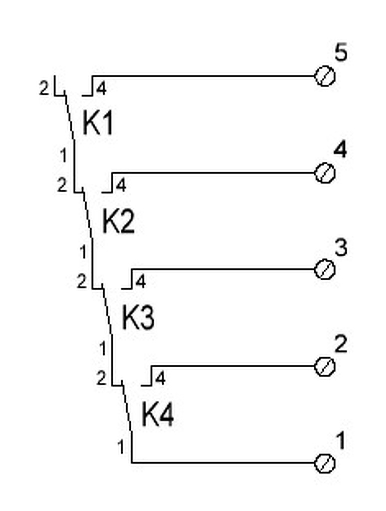 Megépítettem és a következő dilemmám van: a mellékelt kapcsolási rajz lesz majdan a vezérlés, de ha egy szint "bekapcsol" vagyis megy a relé akkor a felette lévő relének nem szabad mennie. Nézegettem egy két CD 40xx IC-t de nem nagyon találtam olyat amit szerettem volna.