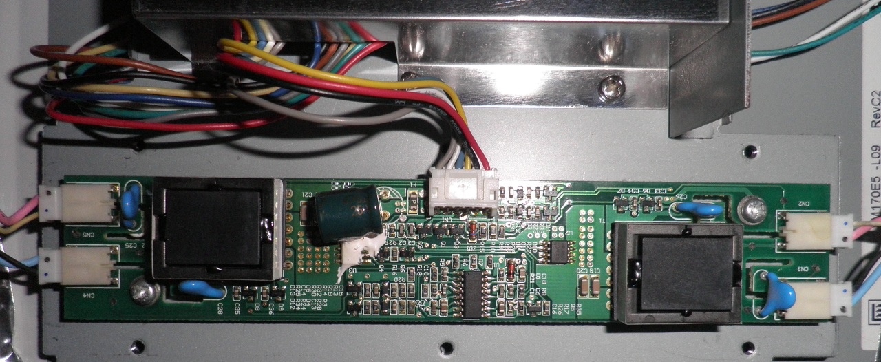 Azt javasoltátok, hogy szedjem szét és világítsak a panel mögé, hogy a háttérvilágítás rossz-e vagy ténylegesen nincs képmegjelenítés. Szétszedtem ma a monitort és arra jutottam, hogy csak megvilágítás nincs, az LCD panelen rendesen megjelenik a kép. Készítettem egy képet arról a NYÁK-ról ami - szerintem - a háttérvilágításért felel. Semmilyen szemmel látható baja nincs, átnéztem alaposan. Szerintetek mit lehet vele kezdeni? Egyáltalán ez a hibás, vagy a fénycsövek? Mit mérjek meg?