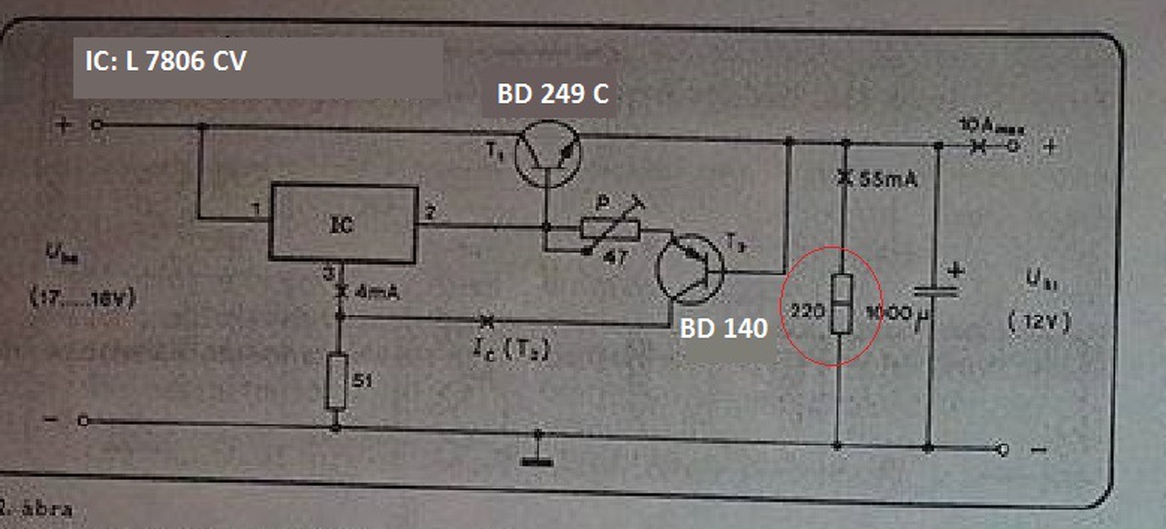 Köszönöm a gyors válaszokat! Ma beszereztem az ellenállást és beforrasztottam a nyák-ra, de a kapcsolás valamiért nem úgy működik, ahogy vártam. Kicsit átalakítottam igazából, mert én olyan DC-DC átalakítót szeretnék ami a bemenő 12 V-ot 6 V-ra viszi le és kibír 20 A áramot. E célból átalakítottam a kapcsolást a melléklet ábrának megfelelően. Azonban ha rákötöm a 12 V bemenetet mindig 7-8 V között kapom vissza (a poti állásától függően tudom változtatni) a 6 helyett. Lehet a kondit is nagyobbra kellett volna cserélnem? ui.: Működés közben ciripelő hangot hallok az elektronikából, rögtön amint ráadom a 12 V-ot. A segítségért hálás lennék, köszönöm!
