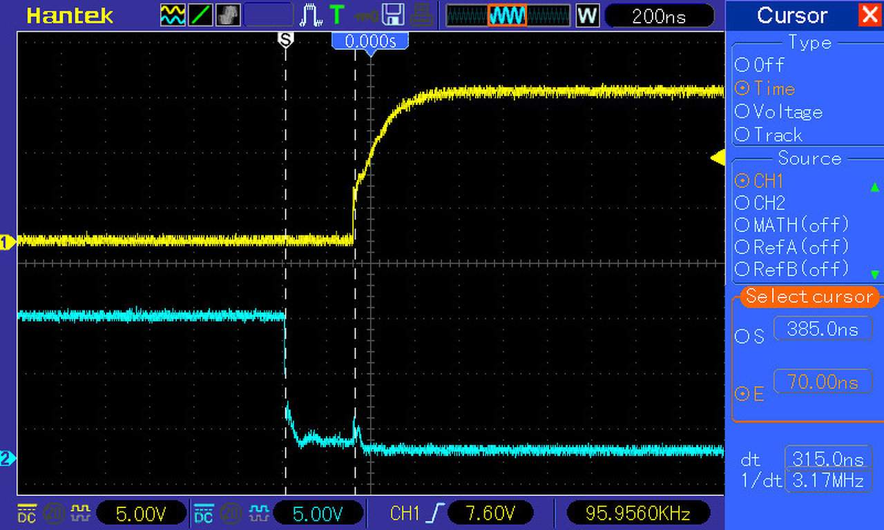 Ha az első ábrán a sárga az alsó FET gate és a kék a féplhíd, akkor nem látok semmi katasztrófát.