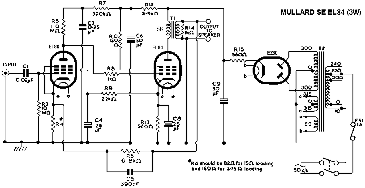 Az a rajz szerintem hibás. Az EF segédrácsa 100-140V-ot kíván, honnan kapja? Egyáltalán mi a funkciója a C4-R9-nek? Az EL84-nek nem kéne rácslevezető, valamint az EF anód és az EL vez. rács közé nem kellene csatolókondi?