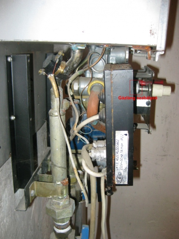 Az őrláng nagysága nem változott. Illetve igen... Leszedtem a lemezt amin a kék nyomógomb, és a hőmérő van. És így magában a réz tengelyt nyomtam a begyújtásnál. Azt vettem észre, hogy miután begyulladt az őrláng, ha picit megmozgatom a tengelyt fel-le és be-ki, akkor változik az őrláng nagysága. Ilyenkor van, hogy nagyobb lesz az őrláng magassága, és nem felfele mutat, hanem balra a termoelemre. És amikor ilyen az őrláng, akkor begyullad a főláng is. Aztán megy is rendben egy darabig. Fűt, aztán ha eléri az előremenő vízhőfok a beállított értéket visszamegy őrlángra, aztán újra bekapcsol a főláng, stb. Egy idő után (10-40 perc) kattannás a termomágnes felöl, és kialszik minden. Utána kezdem elölről. Őrláng begyújtása, ha kicsi az őrláng nem kapcsol be a főláng, akkor a tengely mozgatása (nem forgatása) hogy eltaláljam azt a pontot ahol megfelelő az őrláng, és ha minden szerencsésen alakul, akkor újra bekapcsol a főláng, és megy egy darabig, amíg ki nem alszik az egész újra.