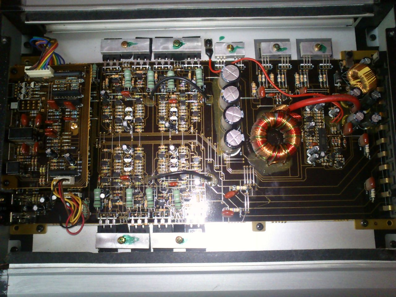 Kezdésnek kondikat kicserélem, aztán használom kicsit. Meg átforrasztom még egyszer. A hővédelemel foglalkozom kicsit, lehet túl későn tilt! A Hídba használom egy nyomoval, kicsit defektes, egyszer leszakadt a bevezetése meg fizikailag van kicsit oda 4 ohm helyett 3,4 ohm a tekercsét megnéztem. Meg égve nincs. Egy e szériás alpine nyomo 250W + 63L kocka láda, 2x 75 mm átmérőjű.