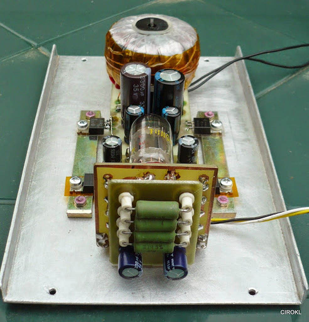 Pedig ekkora feszültségre ECC82-t (12AU7) kéne használni. Azzal jó hangja van, nekem a hasonló felépítésű fejhallgató erősítőmben sem 6N1P-vel, sem 6N2P-vel, sem ECC85-tel nem szólt valami szépen.
