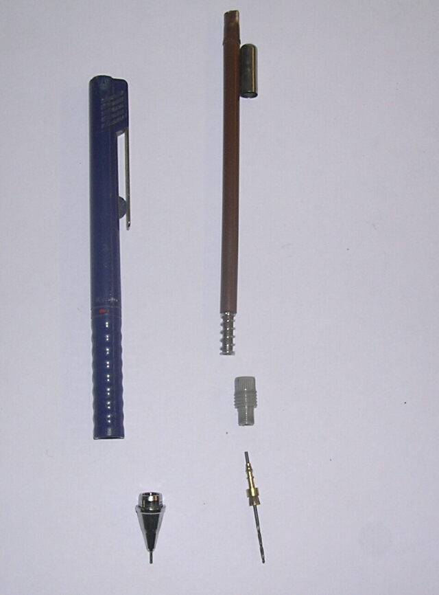 asszem az volna a legjobb. S mivel az alap patron 0,5 ös hegyhez való emiatt sokat kell terpesztenie a patronnak s 15 mm hosszon kb 0,05mm-üt de fúrtam vele s pontozott nyáknál nem volt probléma.Nem volt itthom kisebb hatszögem emiatt kicsit bumfordi lett. Szóvalé ezt már csak finomítani kell és használható.Mrex