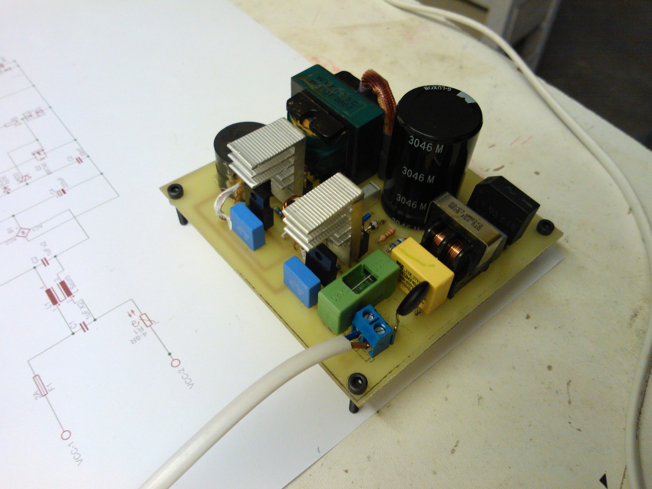 Már egy ideje foglalkoztatnak a kapcsolóüzemű tápegységek. Skori tervei alapján készítettem is egyet ami szépen működik is. Természetesen még hátravan egy oszcilloszkópos vizsgálat is de addig is itt van egykét kép.