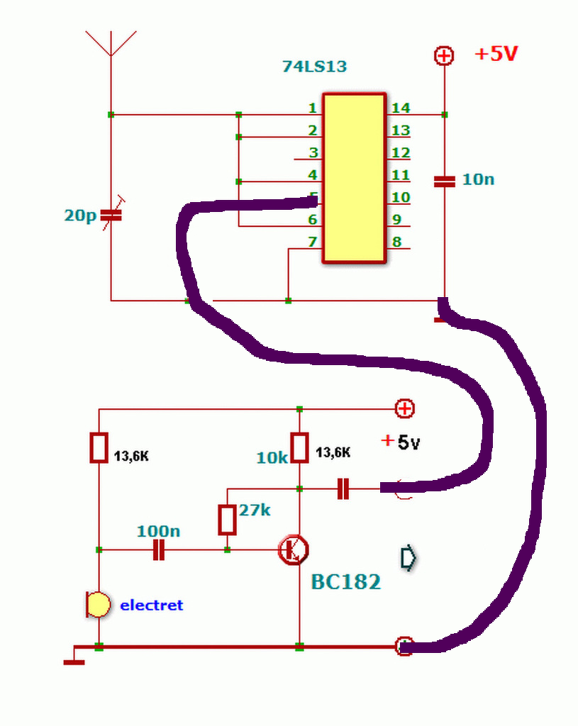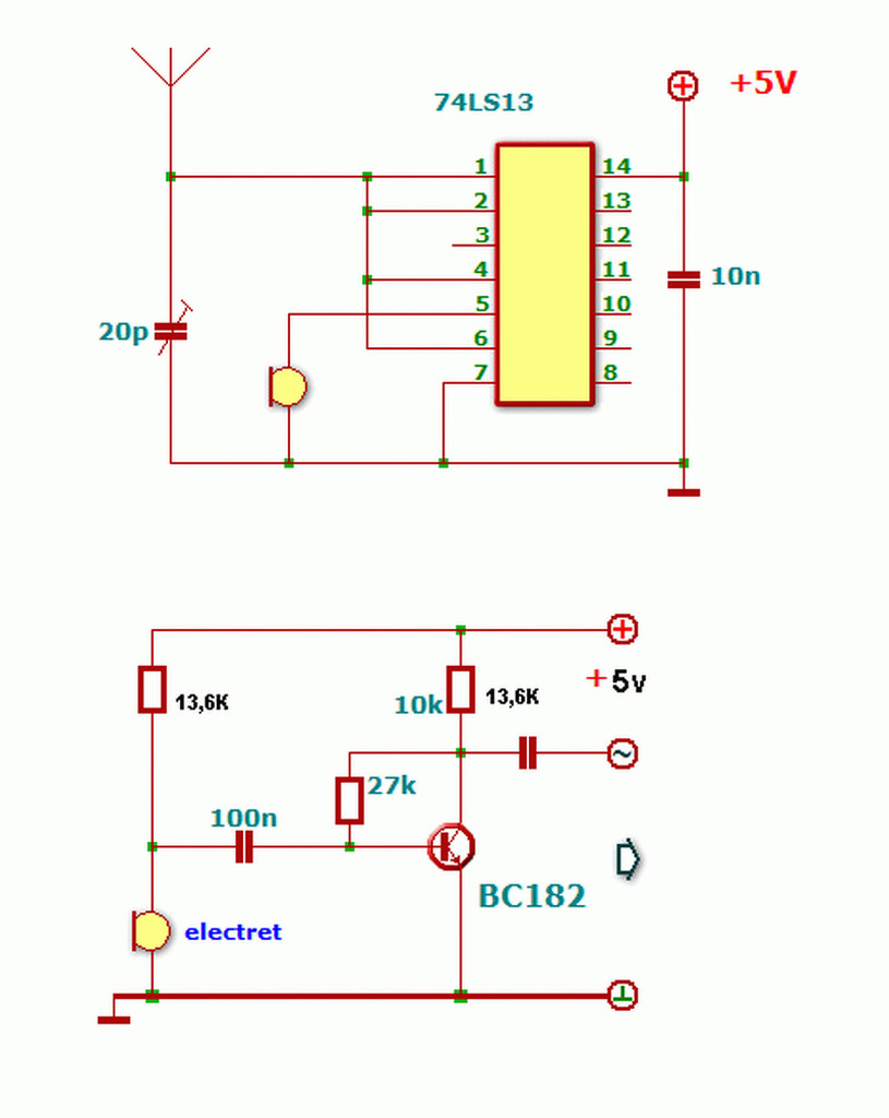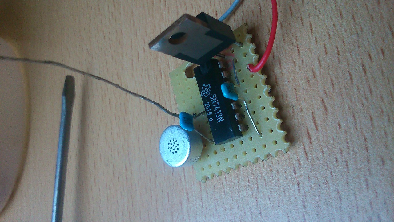 Ez akkor működne rendesen?Mert én úgy gondoltam,hogy a poloskában az adás egy önálló mikrofonból halk lesz,ezért akarok tenni elé egy mikrofon erősítőt,és a már erősített mikrofon jelét adja le.