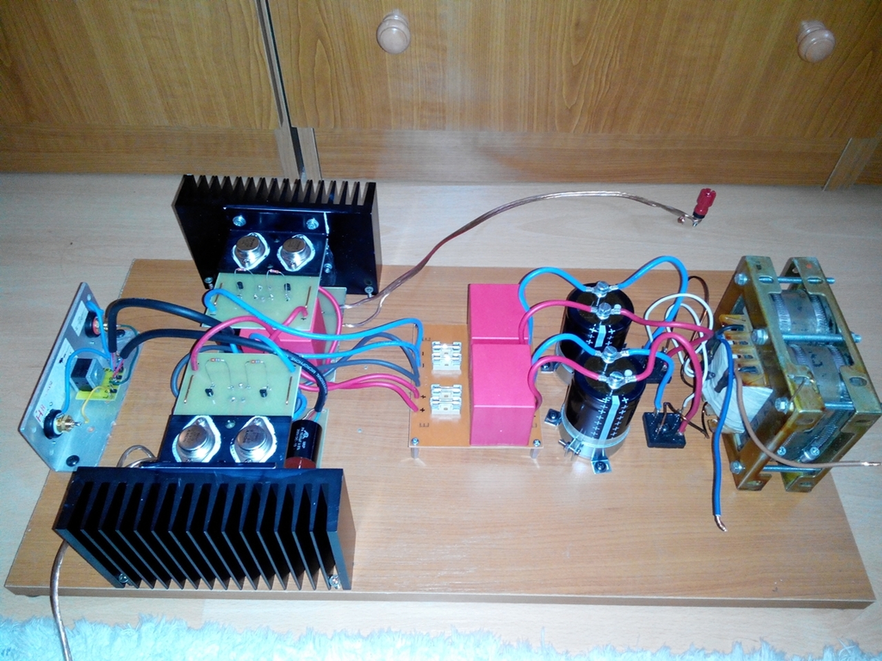 Üdv!Én még nem építettem meg a 8 Wattos változatot. Így nem tudom milyen a hangja Tranzisztorral és V-Fet el. De azt tudom hogy azért építünk A osztályú erősítőt hogy azt A osztályban üzemeltessük. A 100mA áram elég kevéske legalább 500-800mA áramot engedjünk azért meg neki. De szerintem a hangjuk 1A felett jön meg.