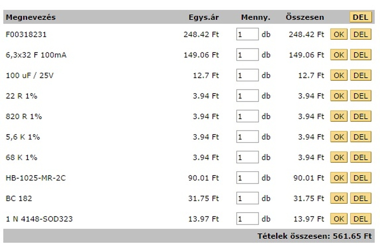 Tehát akkor ezekre az alkatrészekre lenne szükségem: