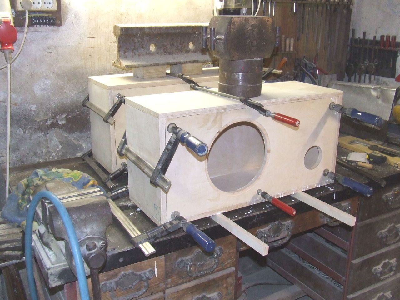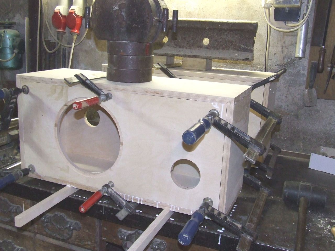 Egyenlőre még semmi sem garantálható, de igyekeztem figyelembe venni több tanácsot (persze amik egymásnak ellentmondanak, azokat nehéz). Elsősorban Ptesza dobozméret kalkulációs programját használtam, és kényszerűen a kivitelezési lehetőségeim korlátain belül kellett a gyártást is megoldani. Nem volt semmilyen különös esztétikai elvárás (műhelybe készül a doboz), de azért próbáltam korrektül összehozni.