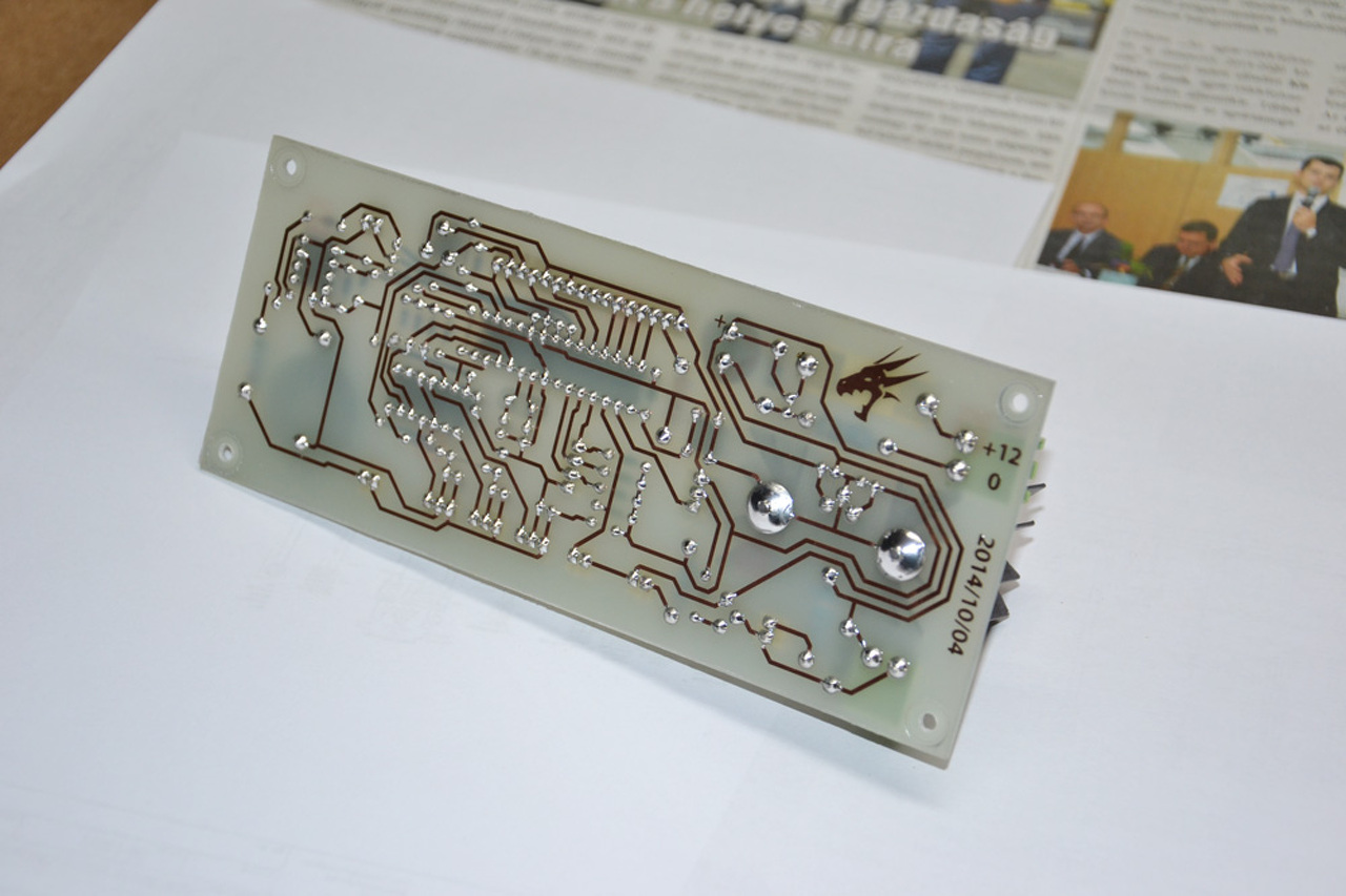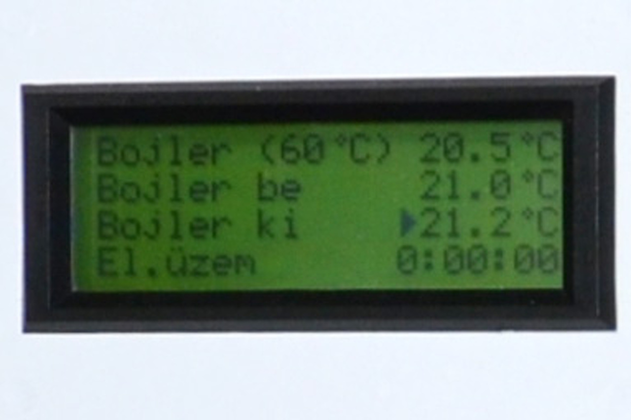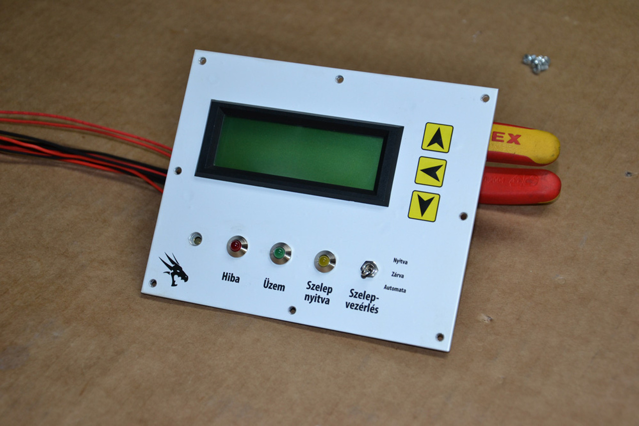 Elkészült az elektromos bojlerbe szerelhető hőcserőlő vezérlője. Ez tulajdonképpen egy két érzékelővel (DS18B20) rendelkező termosztát. Ha a bojlerben lévő víz hidegebb, mint a termosztátban beállított érték és a fűtési rendszerben lévő víz melegebb, mint a bojlerben lévő, akkor a hőcserélő szelepe kinyit, egyébként lezár. Erre azért van szükség, hogy ha hül a fűtési (vegyestüzelésű) rendszerben a víz, ne tudja visszahűteni a bojlerben lévő vizet. A többi extra, amit tud: Ha valamelyik szonda 5 fok alatt vagy 99 fok felett érzékel, akkor mindenképpen sípol (kis furat az előlap bal alsó részén). Beállítható egy riasztási hőmérséklet is. Ha valamelyik szonda ettől melegebbet érzékel, akkor is sípol. Van egy bemenete, amit a bojler elektromos fűtésére lehet kötni, így tudja mérni azt az időtartamot, amíg az elektromos fűtőbetét áramot kap. A számláló max. 9999 órát képes "észben" tartani. A vicc (és egy hosszabbtávú teszt) kedvéért egy DS1307 tárolja az elektromos üzemidőt, gyakorlatilag RAM-ként van használva. A számláló természetesen nullázható. Van rajta egy harmadik szonda is, az a hőcserélőből kilépő víz hőmérsékletét méri, egyéb szerepe nincs (ki kellett tölteni a négysoros kijelzőt ).Most elöször csináltam fóliabillentyűzetet a beállításokhoz, használhatónak tűnik a dolog. A szekrény alsó felében lévő termosztát a keringetőszivattyút kapcsolja. Régóta ez látja el a feladatot, azt már nem akartam kivenni a rendszerből, illetve belekeverni az áramkörbe. Perpillanat a tesztüzem folyik, a vizes kiépítés egy héten belül lesz kész.
