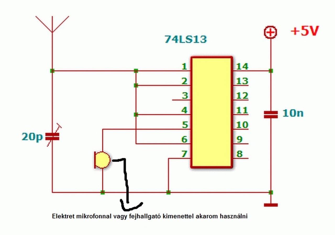 Meg szeretném építeni ezt a kapcsolást,de sok kérdésem lenne. 1. Lehet USB-ről adni a feszültséget? 2.Mekkora a hatótávolsága kb. 35cm-es antennával (kábellel)? 3.Lehet a mikrofon helyére 3.5-ös jack bemenetet rakni(mp3 lejátszóval vagy PC-vel használnám),és ha igen hogy kell bekötni? 4.Nem lesz halk a mikrofon magába,kell elé egy mikrofon erősítő? 5.Jó hozzá 4,0-20pF-os trimmer fóliakondi? 6.Elfogadható a hangminősége? 7.Az mit jelent,hogy (ez volt a kapcsolás leírásában) "A gerjedés hatására kialakuló 3. felharmonikuson működik, ami kb 100 MHz."? Idézet: „Az mit jelent,hogy (ez volt a kapcsolás leírásában) "A gerjedés hatására kialakuló 3. felharmonikuson működik, ami kb 100 MHz” Azt jelenti, hogy ez egy zavaróadó és nem érdemes foglalkozni vele. Nézz be a poloskás topikba.