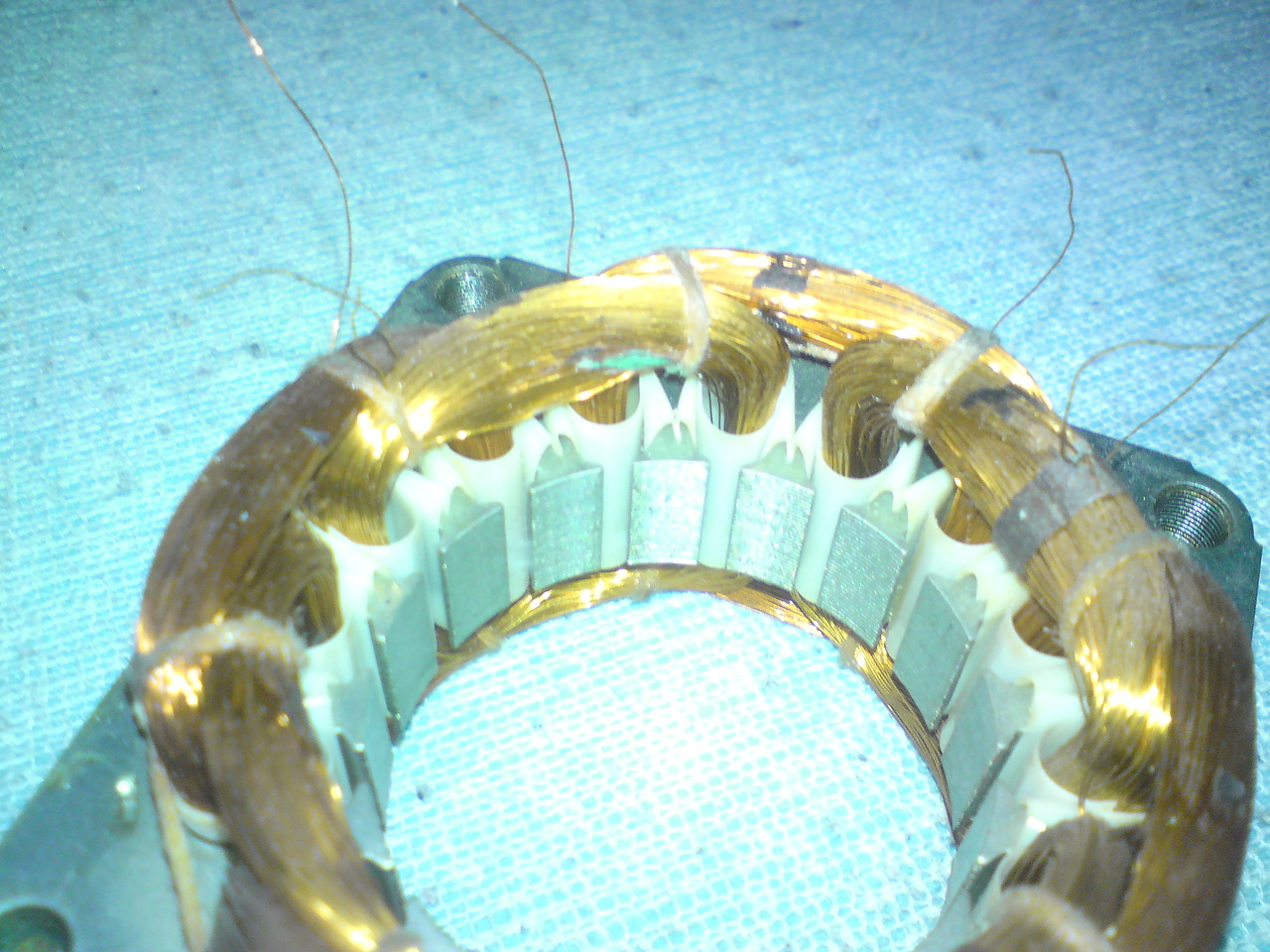 Került hozzám egy állványos szobai ventilátor, 3 fokozat 1 lámpa. A motor álló részéből ki lettek forrasztva a kábelek. Szeretném beüzemelni, csak nem tudom mit hova kössek mert 7 drót jön ki a tekercsekből, de csak 5 eres a vezeték ami lemegy a kapcsolóhoz és a segédfázis kondenzátorához. Lerajzoltam kb hogy is áll össze a tekercselése és mellékeltem egy képet, hogy szerintem milyen típusú tekercselése lenne ha csak egy fordulat volna. Tulajdonképpen ez egy segédfázisos asszinkron motor volna csak több tekercsel? Nem gondolom hogy minden fordulat beüzemelhető már rajta, mert valószínűleg nem ok nélkül szedték szét. A rajzon, a halvány kék vonalakkal a tekercsek közötti átkötést jelöltem. (mármint amit láttam) A színekkel pedig a szembe lévő tekercseket amik szerintem összetartoznak (javítsatok ki ha tévedek) Előre is köszönöm a segítséget